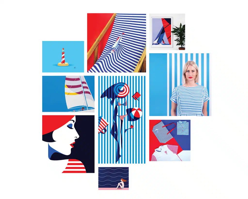 As imagens que você selecionou precisam funcionar bem juntas. Por isso, a organização do seu mood board é importante. Você deve pensar no caminho que o olhar do cliente vai fazer pela tela e tentar criar uma narrativa em cima disso. Lembre-se, você está apresentando um universo gráfico para o cliente e quer que ele entre e “caminhe” por dentro deste universo.