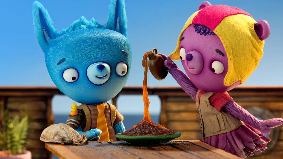 O terceiro exemplo é de algumas cenas que animei para a série Tumble Leaf, da Bix Pix Entertainment. É um desenho para crianças da pré-escola. A direção era para que cada cena fosse cheia de movimentos. Apesar de que tínhamos a licença para que os personagens fizessem coisas loucas como dar um mortal no meio de uma conversa, nós mantivemos à clareza de cada movimento para que eles não ficassem confusos. Como a audiência é muito jovem, qualquer coisa que tire a atenção dos pontos principais da história pode ser desastrosa. Portanto, grandes ações eram encorajadas, mas elas deveriam apenas dar suporte às ações principais.