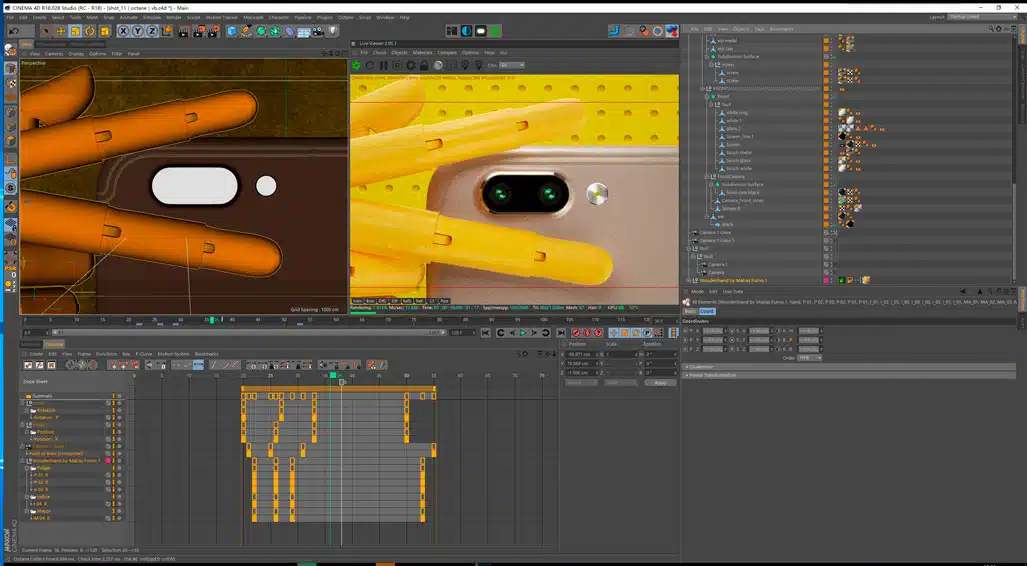 SS- Normalmente, são o Cinema 4D, After Effects, Premiere Pro e Octane Render. No início da fase criativa, sempre uso Octane para fazer alguns rascunhos rápidos no Cinema 4D. Ao mesmo tempo, vou faço um quadro com algumas referências pesquisadas no Pinterest. Só começo a juntar músicas e fazer animatics depois que os clientes aceitem a direção de criação. Faço um monte de testes ao mesmo tempo. Quando os animatics são aprovados, é metade da batalha vencida; o resto são pequenos ajustes, iluminação e render.