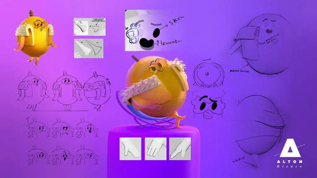 Alton – Nosso primeiro desafio foi encontrar um design de personagem que não fosse exatamente igual a tudo que a gente ja viu. Buscamos inspiração em animações 2D atuais como Gumball, e algumas referências tridimensionais como Toy Art e até mesmo Robot Chicken. Queríamos fazer algo fofo, mas não obvio.