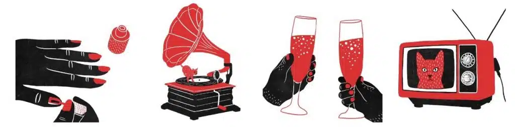 As animações foram desenhadas à mão, o que significa que a artista anima seus GIFs frame by frame. Através do uso de uma paleta simples e de cores contrastantes, restrito ao uso do vermelho, preto e branco, e do uso abusivo da gestalt, Min Liu consegue focar nossa atenção sobre uma ação desejada, tornando a experiência visual muito louca – no bom sentido, claro.