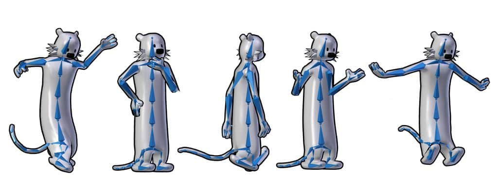Entre inúmeras adaptações destes desenhos na atualidade, o artista Gabriel de Laubier conseguiu se destacar pela sua capacidade de estar um passo à frente no quesito equilíbrio 2D-3D, quando transformou a icônica tirinha Calvin e Haroldo (Calvin and Hobbes em inglês), criada pelo norte-americano Bill Watterson, em uma cena 3D totalmente interativa: