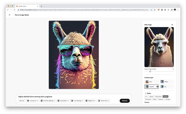 A Adobe também está tentando tornar suas ferramentas de IA mais fáceis de usar do que as da maioria dos concorrentes. Em vez de precisar digitar uma sequência bizarra de descritores para estilizar uma imagem, a Adobe inclui opções integradas para estilos de arte, iluminação e proporção, o que parece uma reviravolta mais detalhada no que o Canva já oferece .