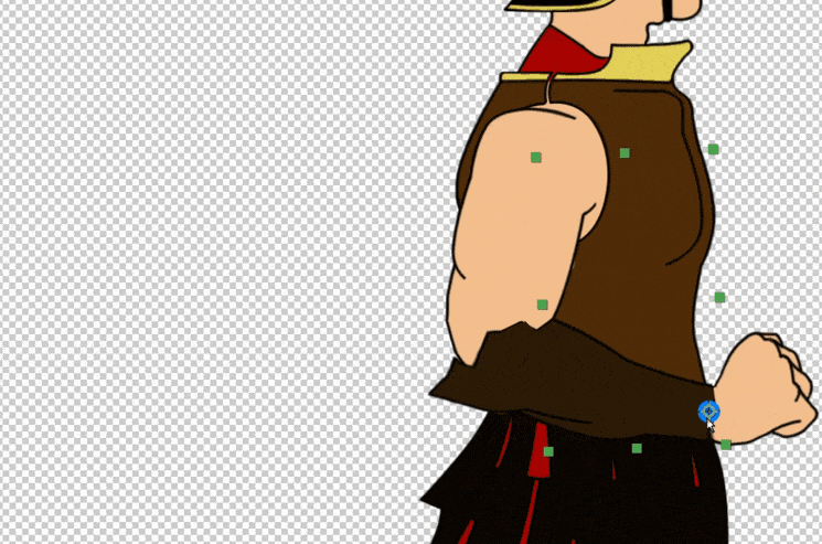 A outra novidade é a ferramenta que proporciona mais controle de todas: posição, escala e rotação. Diferente da Bend Pin, a Advanced Pin tem ele próprio como seu eixo de rotação e escala, fazendo assim um efeito de deformação bem distinto.
