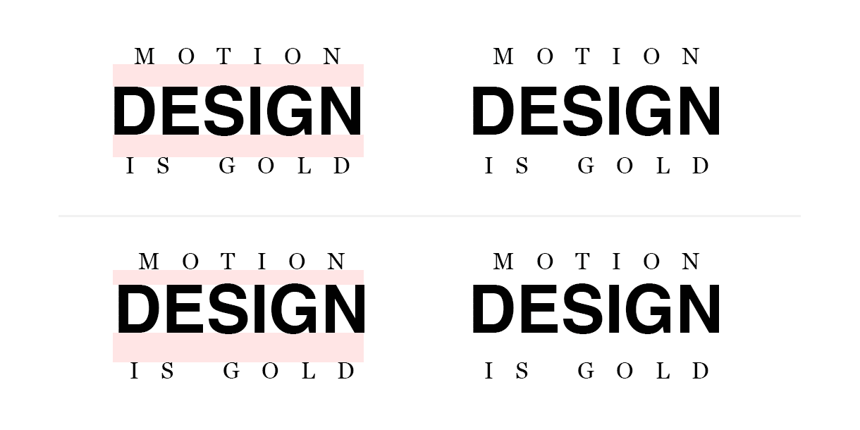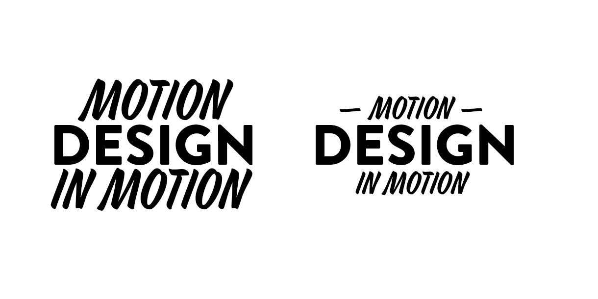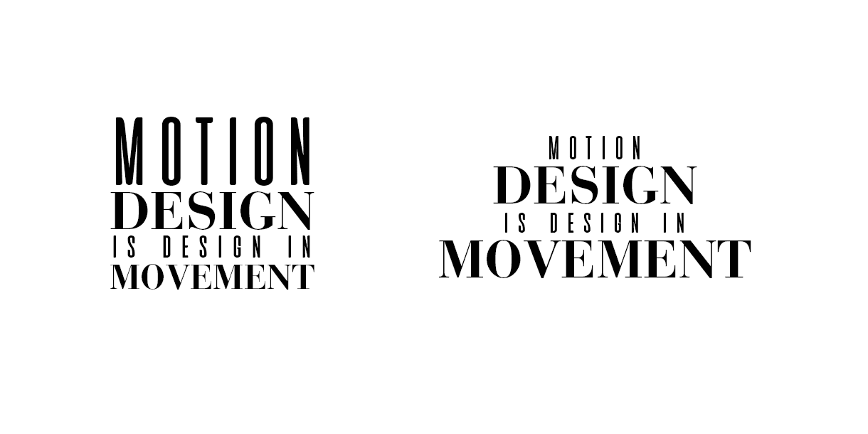 Na primeira combinação a hierarquia não é clara. Na segunda versão, a palavra “design” ganha força e, por consequência, a composição ganha expressividade.