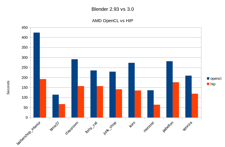 Graças à reescrita, a renderização no Cycles é 2 a 8 vezes mais rápida em cenas do mundo real fora da caixa na GPU! Os tempos de compilação do kernel foram drasticamente reduzidos para Optix, que agora também oferece suporte a ray-tracing de hardware para baking. O suporte ao Open CL foi retirado devido a bugs de driver e ao padrão OpenCL estagnado, mas outros fornecedores de hardware imediatamente entraram no tempo de desenvolvimento para trazer de volta o suporte de renderização de GPU com suas APIs, incluindo AMDs HIP que acabou de chegar ao lançamento 3.0, com a Apple seguindo com o Metal, esperado para estar pronto para o próximo lançamento.