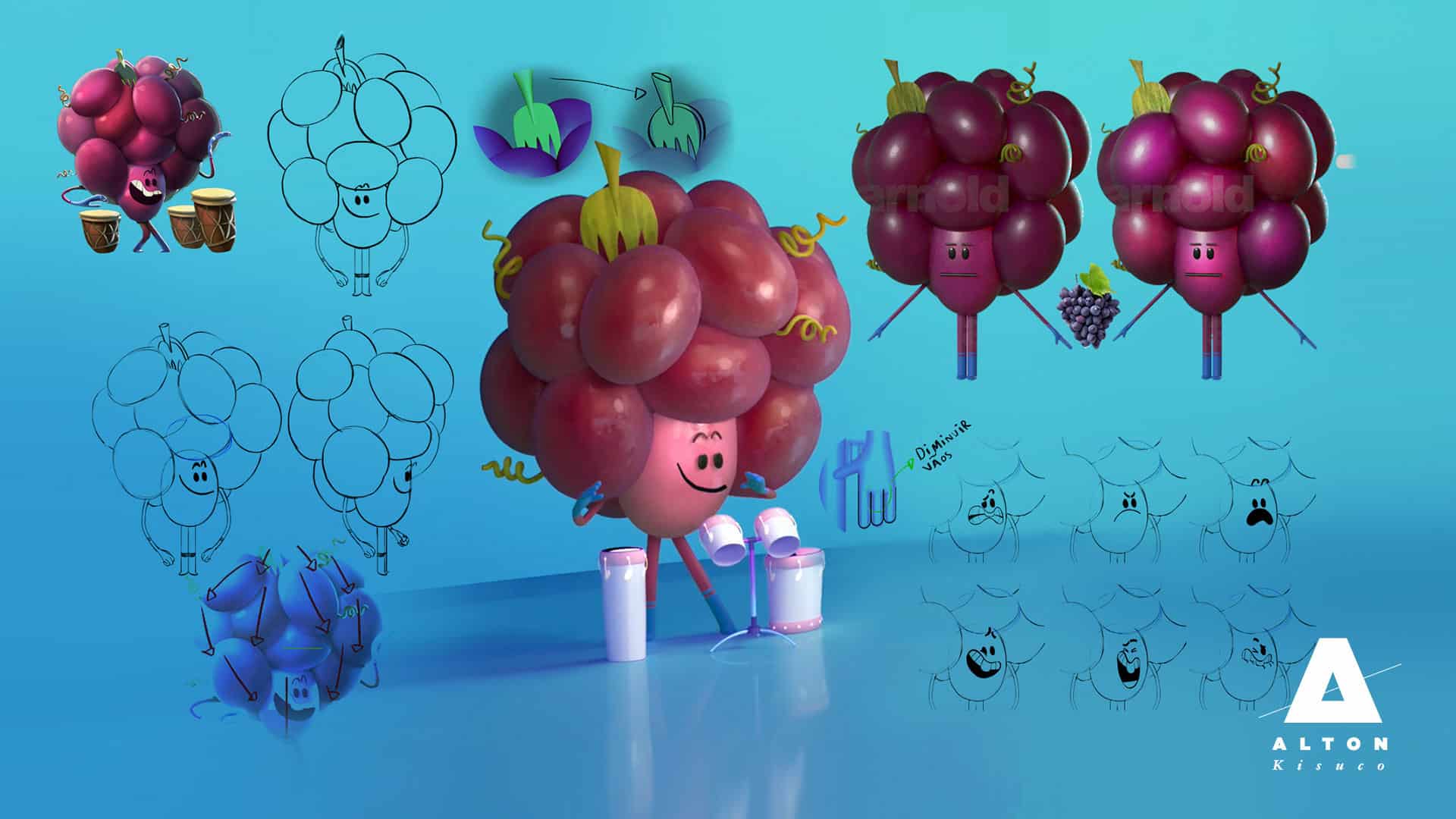 Alton – Nosso primeiro desafio foi encontrar um design de personagem que não fosse exatamente igual a tudo que a gente ja viu. Buscamos inspiração em animações 2D atuais como Gumball, e algumas referências tridimensionais como Toy Art e até mesmo Robot Chicken. Queríamos fazer algo fofo, mas não obvio.