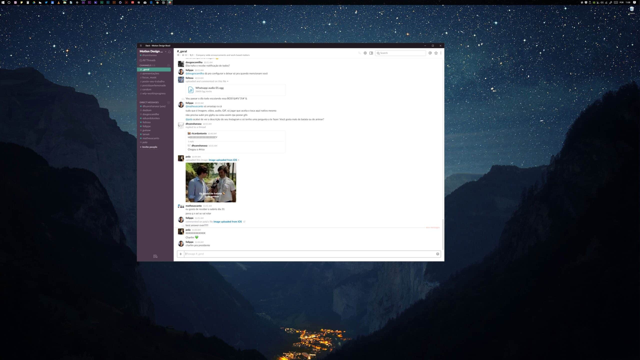 A ideia do Motion Design Brasil Team é criar um espaço coerente onde podemos conversar, compartilhar, aprender, rir e nos divertir. Tudo isso de maneira organizada, sem nudes ou spams demasiados. O Slack funciona de maneira intuitiva, e podemos separar os assuntos de maneira específica. Isso faz com que não percamos tempos com scroll infinito – como no Whatsapp -, e cada um lê ou participa do que quiser, sem interferir, por exemplo, em assuntos que nãos lhes cabe.