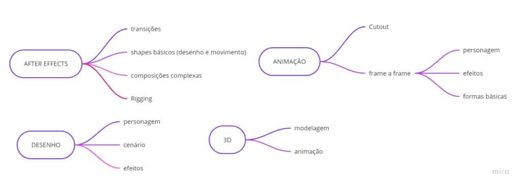 O importante é conseguir visualizar de forma clara ao redor de quais habilidades o seu projeto deve ficar. Eu dividi as minhas em 4 opções: