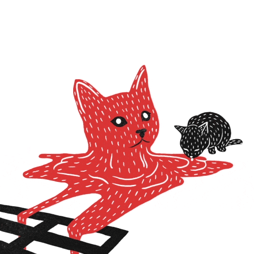 As animações foram desenhadas à mão, o que significa que a artista anima seus GIFs frame by frame. Através do uso de uma paleta simples e de cores contrastantes, restrito ao uso do vermelho, preto e branco, e do uso abusivo da gestalt, Min Liu consegue focar nossa atenção sobre uma ação desejada, tornando a experiência visual muito louca – no bom sentido, claro.