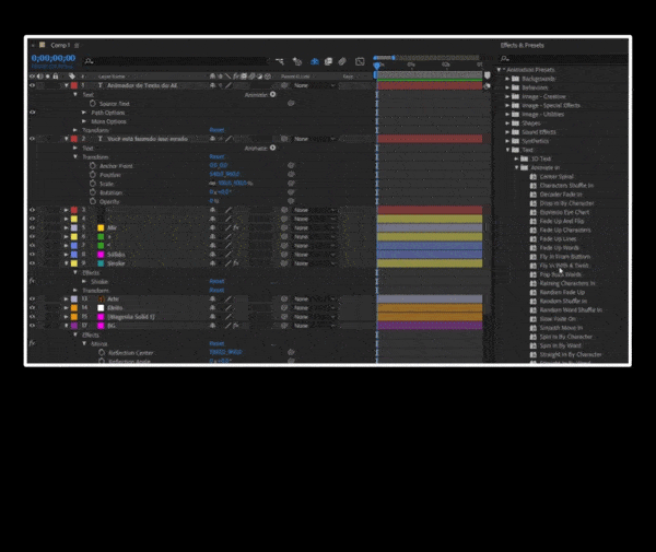 O After Effects é repleto de ferramentas e efeitos complexos que podem ser usados e/ou combinados de maneiras criativas e interessantes. Bons estudos.